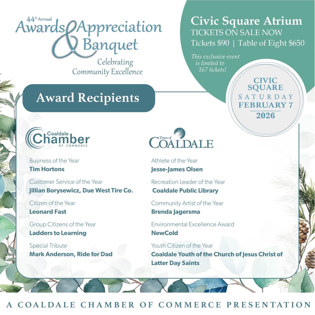 The Coaldale Chamber of Commerce, in collaboration with the Town of Coaldale, is excited to announce that nominations are now open for businesses and individuals who have demonstrated outstanding achievement in 2025.